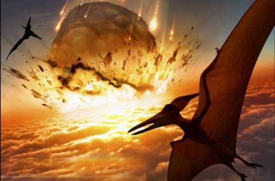 这次生物大灭绝最流行的说法是,一颗小行星与地球发生了大碰撞,这次撞击相当于人类历史上发生过最强烈地震的100万倍,爆炸的能量相当于地球上核武器总量爆炸的l万倍,导致了2.1万立方公里的物质进入了大气中。由于大气中高密度的尘埃,太阳光不能照射到地球上,导致地球表面温度迅速降低。没有了阳光,植物逐渐枯萎死亡。没有了植物,就没有了植食性的动物,肉食性的恐龙也失去了食物来源,它们在绝望和相互残杀中慢慢地消亡。几乎所有的大型陆生动物都没能幸免于难,在寒冷和饥饿中绝望地死去。小型的陆生动物,像一些哺乳动物依靠残余的食物勉强为生,终于熬过了最艰难的时日,等到了古近纪陆生脊椎动物的再次大繁荣。