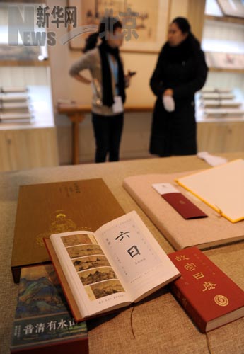 一家参展公司推出的“故宫日历”别出心裁,其中不仅有故宫藏画,其日历的日期更是由各种碑帖中的汉字数字集合而成(12月20日摄)。