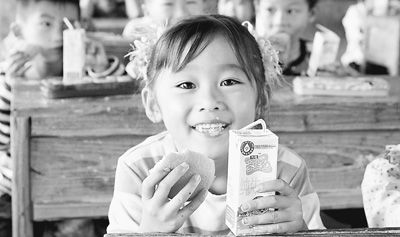 江西安远县三百山镇乌石小学的孩子开心地吃营养餐。刘玉莉摄