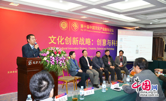 2013第十届中国文化产业新年论坛于1月5日在北京大学英杰交流中心开幕。以“数字出版与未来的阅读”为主题的出版专场演讲与沙龙由北京大学现代出版研究所所长、博士生导师肖东发教授担任主席,云图数媒科技(北京)有限公司数字出版研究院院长郑铁男担任沙龙对话主持,吸引了众多参会者的关注和参与。