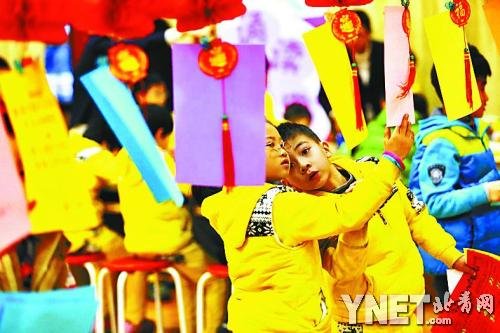 昨天上午,崇文小学体育馆里“张灯结彩”,来自崇文小学、花市小学和新景小学、前门小学、东城区回民实验小学、忠实里小学的一年级学生在这里进行着一场快乐的期末考试。