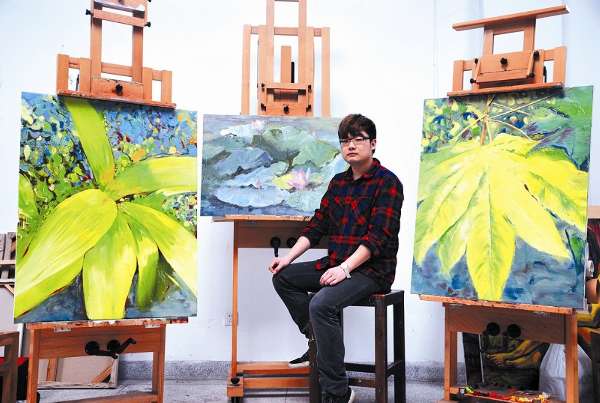 虽然远离市中心的喧嚣,但湖北美院藏龙岛校区的学生们,却早早踏入了热闹的艺术品市场。该校2010级油画系张一丁就是其中之一,早在大一暑假时,他就卖出了自己的第一批作品。