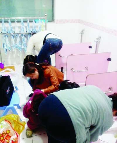 洗屁屁对孩子们来说是不可能完成的任务,老师只能一个个帮忙洗。