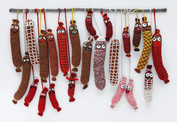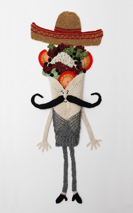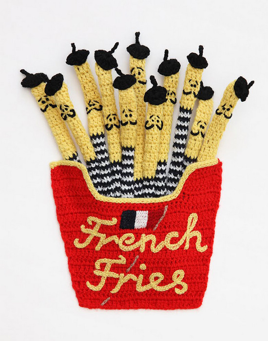 【环球网综合报道】在这一组非比寻常的美食照片中,有电眼香肠,拥有精致小脸的炸薯条,小胡子的墨西哥卷等。这些用钩针编织出来的手工精品出自英国艺术家Kate Jenkins之手。