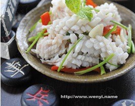 材料:元葱,青椒,姜丝,蒜末,鱿鱼,料酒