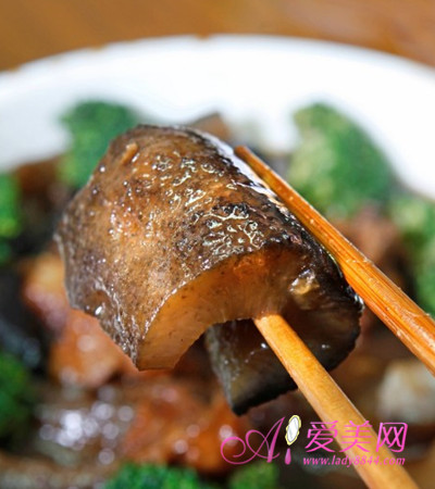 海参冰糖羮:水发海参100克,加水煮烂,调入冰糖。