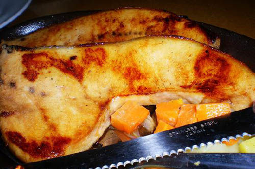 猪排配蒜蓉饭是菲律宾特色美食之一。新鲜美味、香浓多汁、色彩缤纷、充满异国风味。无论你跻身于街头食档(当地称为Kainan)或进入高级餐厅进食,猪排配蒜蓉饭都有地道的菲律宾食品以及欧洲菜式供你选择,令游客回味无穷、称心如意。