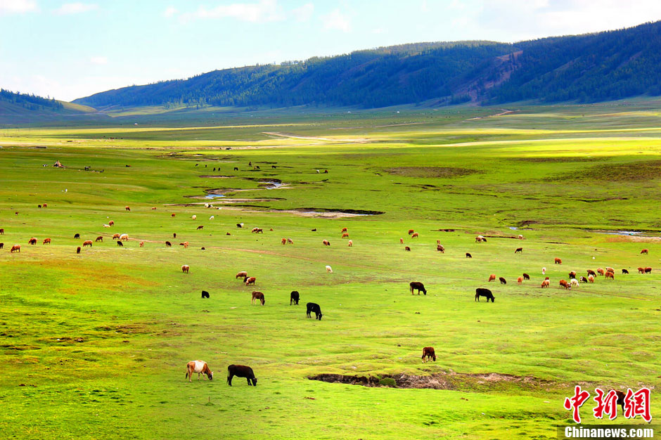 新疆阿勒泰草原草青花开 犹如烂漫多彩画卷