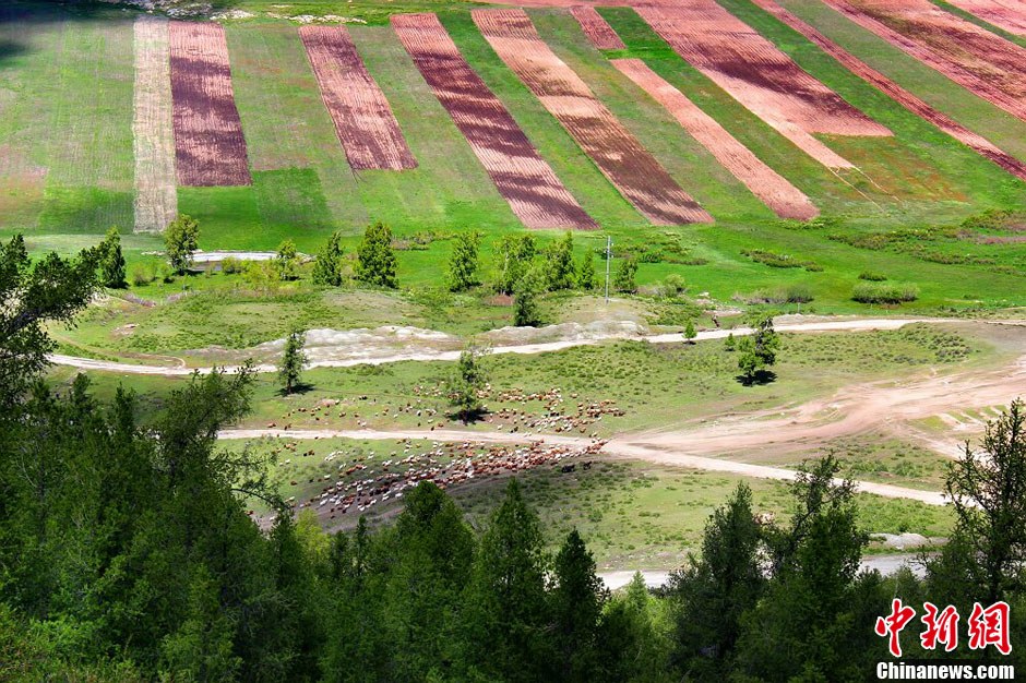 进入5月以后,位于新疆北部边缘的阿勒泰地区,草原之上草青花开,像一轴烂漫多彩的画卷。背阴的山洼里尚存片片残雪,向阳的草坡上泛起青绿。哈萨克牧民转场的驼队已经行进在山谷中的羊肠小道上。王宏山 摄