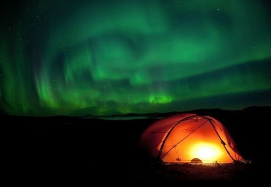 北极光和南极光 地点:频发于南半球和北半球的高纬度地区 极光的出现是由于高纬度地区高层大气中带电粒子和原子相互碰撞摩擦而发出的亮光。极光的颜色丰富多彩,出现时就像一个巨大的窗帘在空中飞舞。