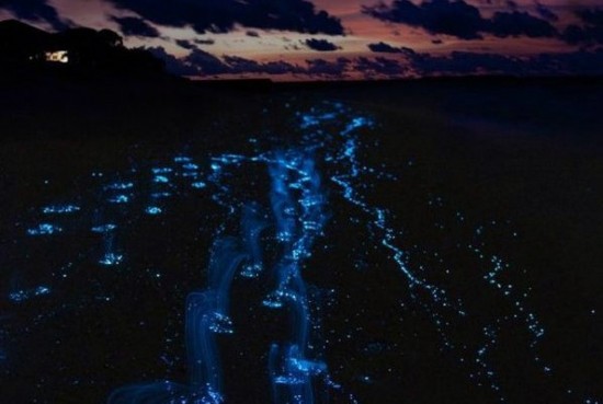 发光的浮游生物 地点:美国华盛顿圣胡安岛或胡德运河 在全球的很多地方都能看到发光的生物体,但华盛顿附近的水域则是欣赏这一奇观的绝佳胜地。强大的水流将丰富的营养盐带到这一地区,从而吸引了大量发光浮游生物到这一地区聚餐。坐在皮艇之上,你可以亲眼目睹海水泛着耀眼的蓝光,你还可以跳入水中欣赏这些发光的浮游生物在你身边游泳。