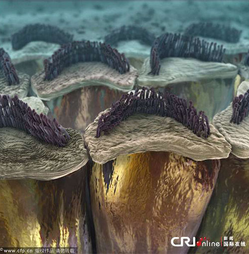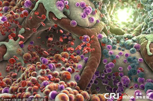 2013年6月4日消息(具体拍摄时间不详),美国康涅狄格州哈特福特,美国多功能细胞工作室Hartford通过放大技术,将人体细胞和组织放大至1000万倍之后的景象。这些图片仿佛是出自最新的科幻电影,仿佛是探究一个完全陌生的世界,而实际上,图片惊人的接近人体的内部。这些3D的景象以最生动、最详尽的水平展示了人体内部的构造和工作,希望通过这一方式,令学生和科学家以全新的方式了解人体。