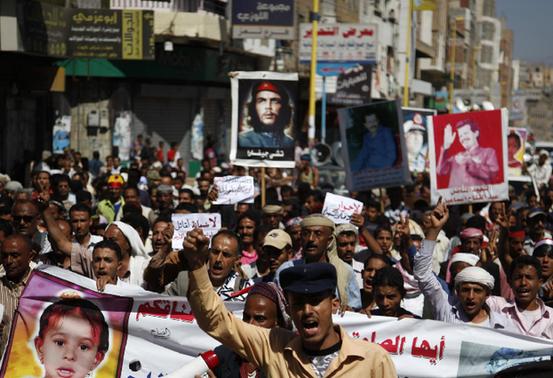 数万名反政府示威者在南部塔伊兹省首府塔伊兹市游行,要求取消总统萨利赫及其家人的豁免权。