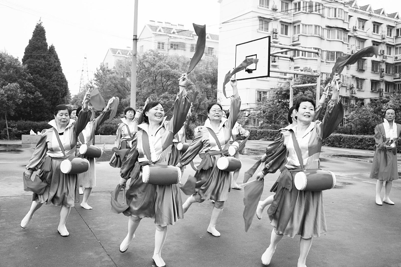 每年的茶文化节期间,我市都要组织各种文化宣传活动,展示我们信阳的文化。来自浉河区三五八社区的腰鼓队格外引人注目,腰鼓队的队员们大部分是社区的退休职工。她们敲起欢快的节奏,跳起优美的舞姿,队员们的生活也是越过越快乐。图为腰鼓队排练时的情景。记者 赵锐 摄