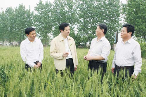 随后,郭瑞民一行来到浉河区双井办事处查看麦苗长势。他指出,今年我省全面实施《中原经济区建设纲要》,党的十八大将胜利召开。做好2012年农业农村工作,稳定发展农业生产,确保农产品有效供给,对推动全局工作、赢得战略主动至关重要。当前正是春耕播种的黄金时期,我们绝不能因为连续多年增产增收而思想麻痹,必须坚持高标准、高质量,加快播种进度,提高播种质量。努力在高起点上实现新突破、再创新佳绩。一要积极改造冬闲田,杜绝撂荒田,扩大粮食种植面积,提高复种指数,提升粮食增长空间,增加农民收入。二要提高机械化水平。结合信阳实际,大力实施高标准粮田百千万工程,走适宜信阳地域特色的规模化生产之路,提高机械化耕作水平,提高粮食单产,提升种植效益。三要推广良种良法。加大科研力度,加快品种改良,推广更适合信阳发展的粮食品种。同时,要搞好春耕备播服务,保证农民急需的化肥、种子、柴油等物资供应和气象服务到位,确保春耕任务顺利完成;要加强水源统筹调度,挖掘潜力,最大限度地保障插秧用水需求;要加强麦油田间管理,严格防治病虫害发生,确保夏粮丰产丰收,为夺取全年粮食增收打好基础。