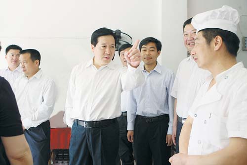 本报讯(记者 杨柳) “五小”门店整改达标不仅事关创卫能否成功,而且与居民的生活息息相关,是创卫工作的重点,也是难点。5月7日上午,冒着细雨,市委书记郭瑞民带领市直相关部门负责同志到浉河区民权办事处张李湾社区、湖东办事处三五八社区专项检查“五小”行业创卫工作。市领导张春香、朱继先、李水、曹茂明陪同检查。