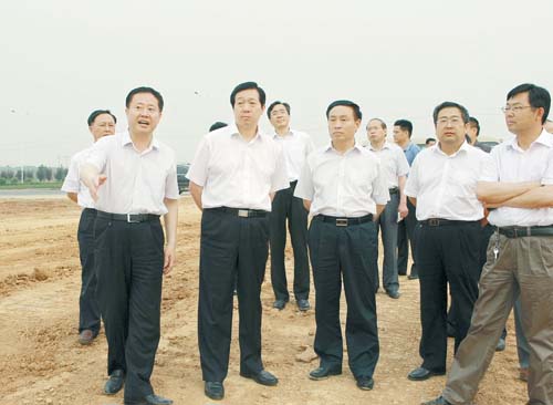 图为郭瑞民等实地检查高铁片区建设进展情况时的情景。