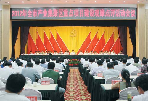 本报讯(记者 方慧玲 杨柳)结束为期4天半的实地观摩活动后,8月17日下午,2012年全市产业集聚区重点项目建设观摩点评活动会议隆重召开。