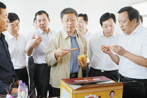 河南华英禽业集团是国家农业产业化重点龙头企业,目前已辐射带动周边地区5万余农户30多万人通过养殖实现脱贫致富奔小康,农户年收入均在3万元以上,共实现综合社会效益50亿元。在参观生产流程、听取有关介绍后,范小建对该企业在带动就业、提高农民收入中发挥的作用给予充分肯定,并鼓励企业负责同志要进一步扩大生产规模,为促进当地扶贫开发和经济社会又好又快发展做出更大贡献。