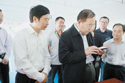 吴基传一行首先来到信阳工业城,考察了星天空数码、天扬光电、天恒液晶等入园企业和重点工程,深入厂房实地察看了生产工艺流程及相关的基础设施建设情况,并听取了相关负责同志的汇报。