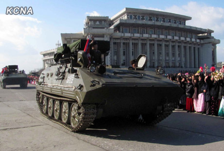 捐赠仪式结束后,“女盟”号火箭炮在咸兴妇女同盟盟员的欢送下开往人民军部队。