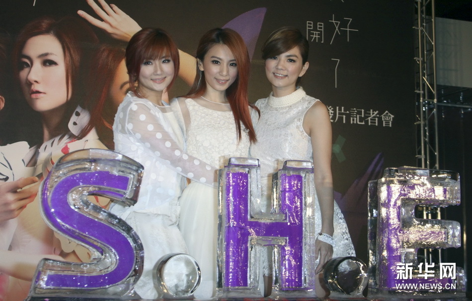 11月14日,歌手组合SHE在新专辑《花又开好了》发行记者会上接受媒体拍照。