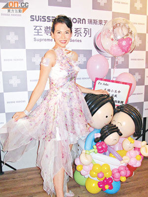 蔡少芬挺着大肚为护肤品牌拍广告。