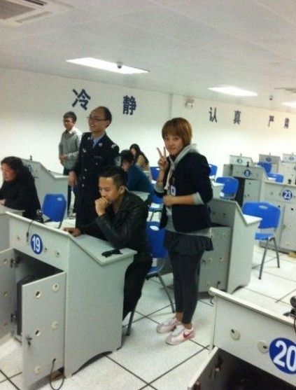 昨天名为“繁啦”的网络媒体人在新浪微博中晒出了几张邓超坐在一张桌子前认真考试的照片。原来演员邓超近日回到家乡考驾照。趁邓超在认真考试之际,驾校的工作人员监考老师趁机跑过来合影。一旁的邓超此时忙专注于考试无暇顾及看镜头配合微笑。而坐在同一教室考试的同学也只能按捺住自己的心情,先把试考完了再说。