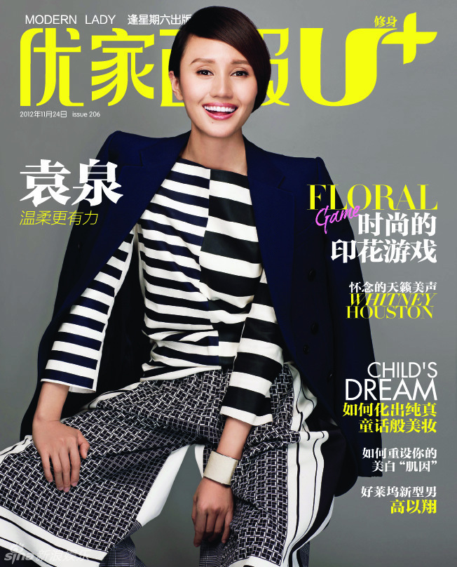 高清:袁泉冬日装扮登画报 展温婉笑容添亮色