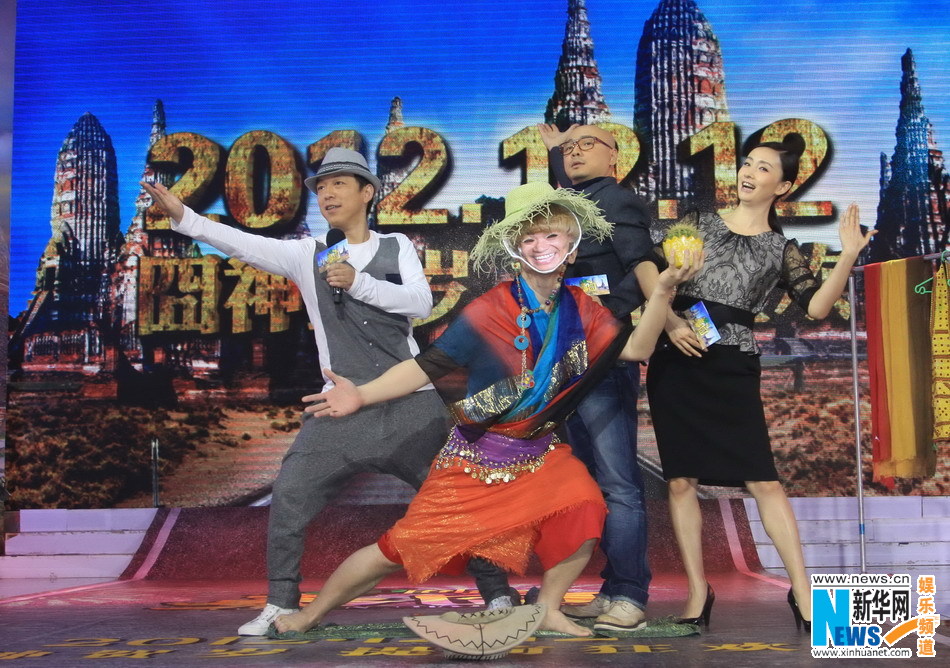 黄渤与徐峥在电影里是一对冤家,两人每天针锋相对,剑拔弩张,从办公室一路斗到泰国。现场二人就上演了一出对抗赛,从给王宝强变装,到骑着儿童车飙车比慢,最后甚至戴着拳击套大打出手。“接下来有请徐峥、陶虹表演一个家暴节目,家庭暴力在舞台上的展现啦”,黄渤还借机挑起徐峥、陶虹的家庭斗争,徐峥、陶虹夫妻俩爽快答应,一等开始,二人却夫妻同心拳头齐齐砸向了黄渤,打的黄渤措手不及。