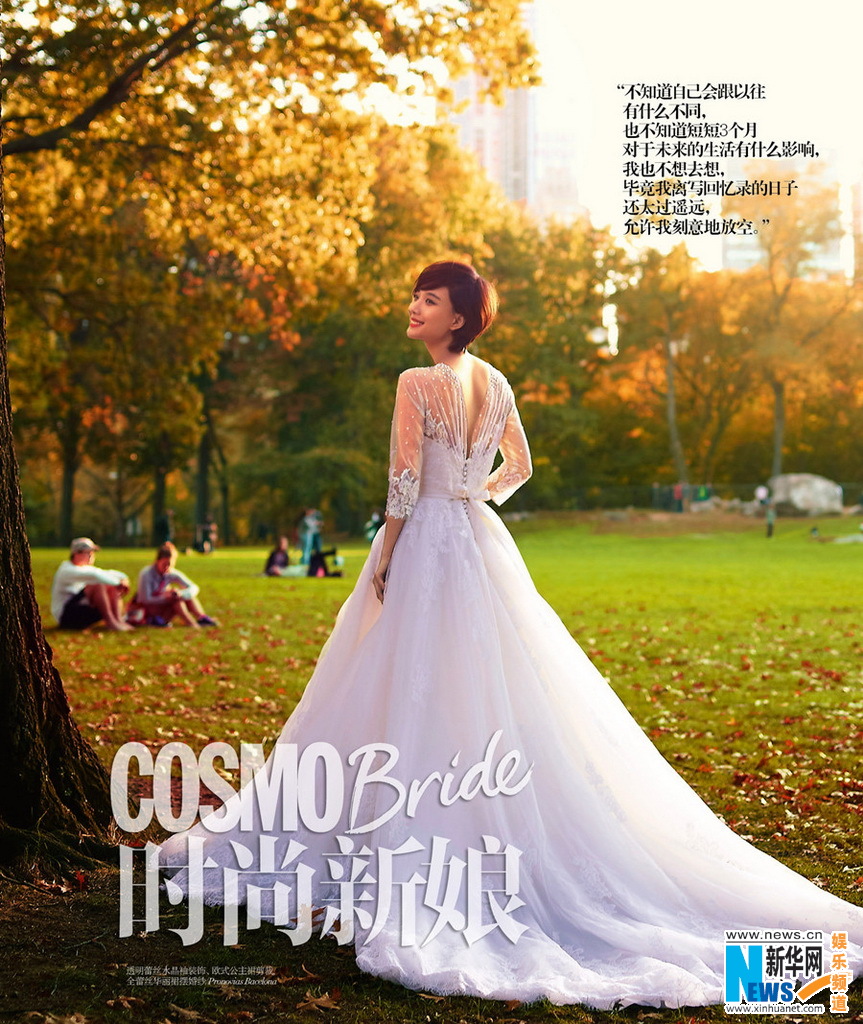 王珞丹美国街头化身新娘 身披白纱诠释东方式恬静