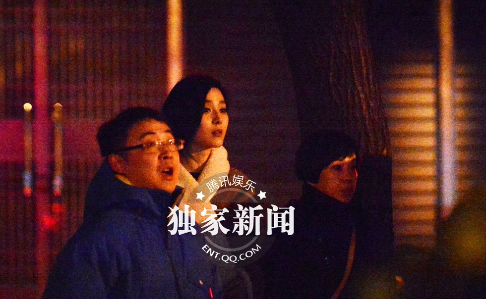 范冰冰与友人聚餐薄施粉黛 饭店门口等车受冻