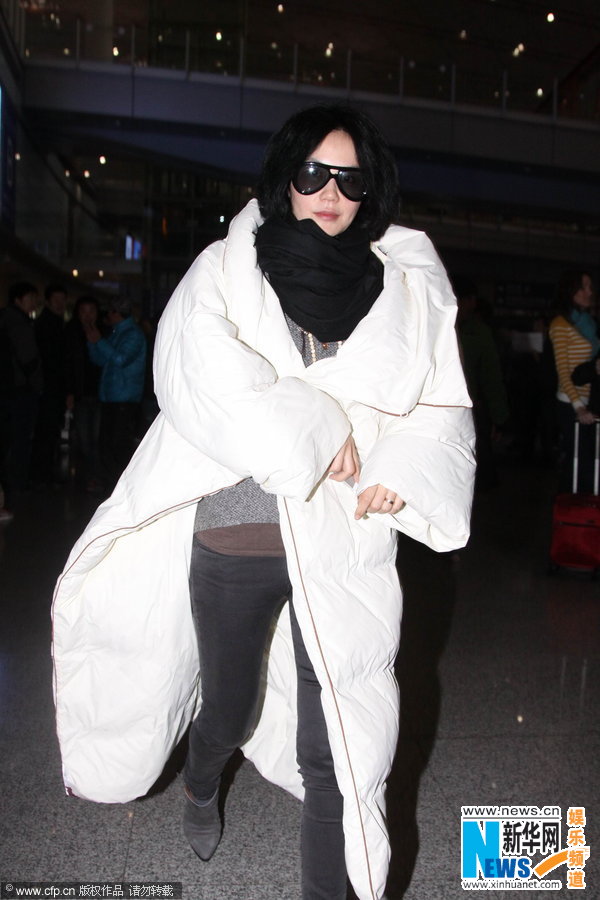 记者偶遇王菲独自一人低调现身首都机场。她身穿白色肥大羽绒服现身,虽然机场当天有很多粉丝接机,但是大家都没有认出这位天后。