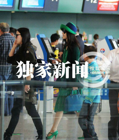 范冰冰绿衣绿裙复古装现身 狂煲电话粥气势十足