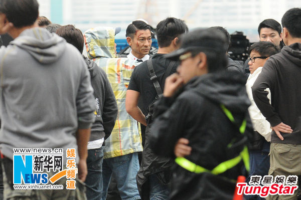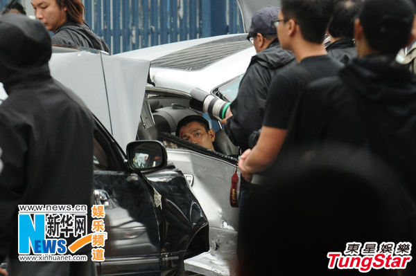 该场戏讲述洗色丽被饰演悍匪的叶山豪胁持,华仔要勇救佳人,不料赶到现场却发生撞车意外,他的座驾被撞到前门凹陷,冒出浓烟。华仔要拍摄撞车后平躺在座椅的惨况,他数度想自行挣扎出车外都无法成功,结果被黄德斌、施祖男等同袍营救,被救出座驾外的华仔满身是血,双腿被夹。在同袍合力拉他出车外时,华仔发出阵阵惨叫声,连旁观的粉丝亦大赞画面逼真。华仔一拍完该场戏后就精神奕奕地与演员倾谈拍摄情况,得知OK后就在工作人员陪伴下,走入工厂大厦更衣,把面上的血浆清理干净,然后乘坐保姆车离去。