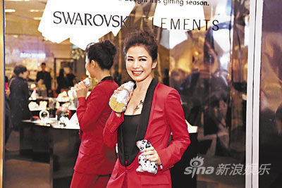 钟楚红出席水晶精品的活动,获大会送赠价值逾5万元的水晶猫摆设