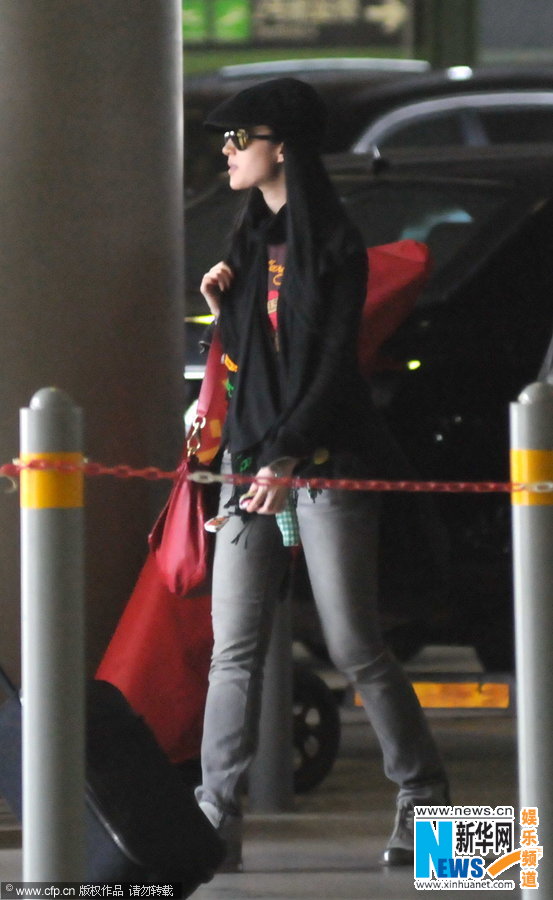 刘亦菲与富豪干爹现身 戴帅气贝雷帽不理众人(图)