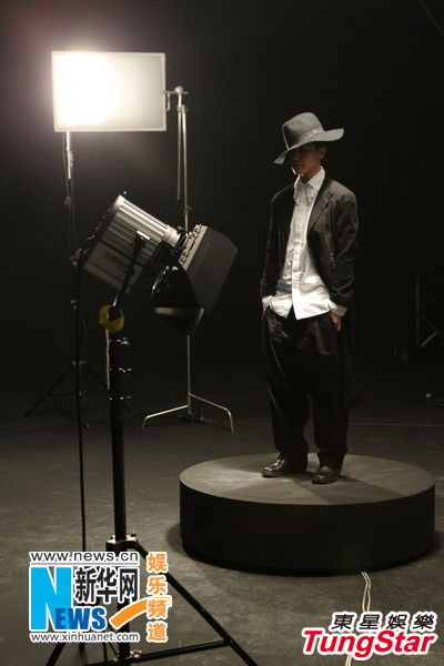 组图:何韵诗以全黑打扮亮相 拍新歌MV感触落泪