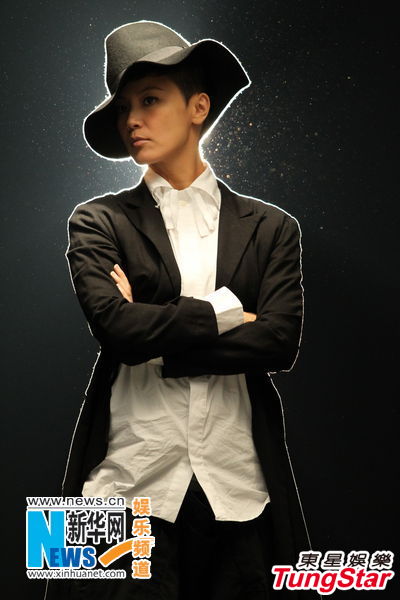 组图:何韵诗以全黑打扮亮相 拍新歌MV感触落泪