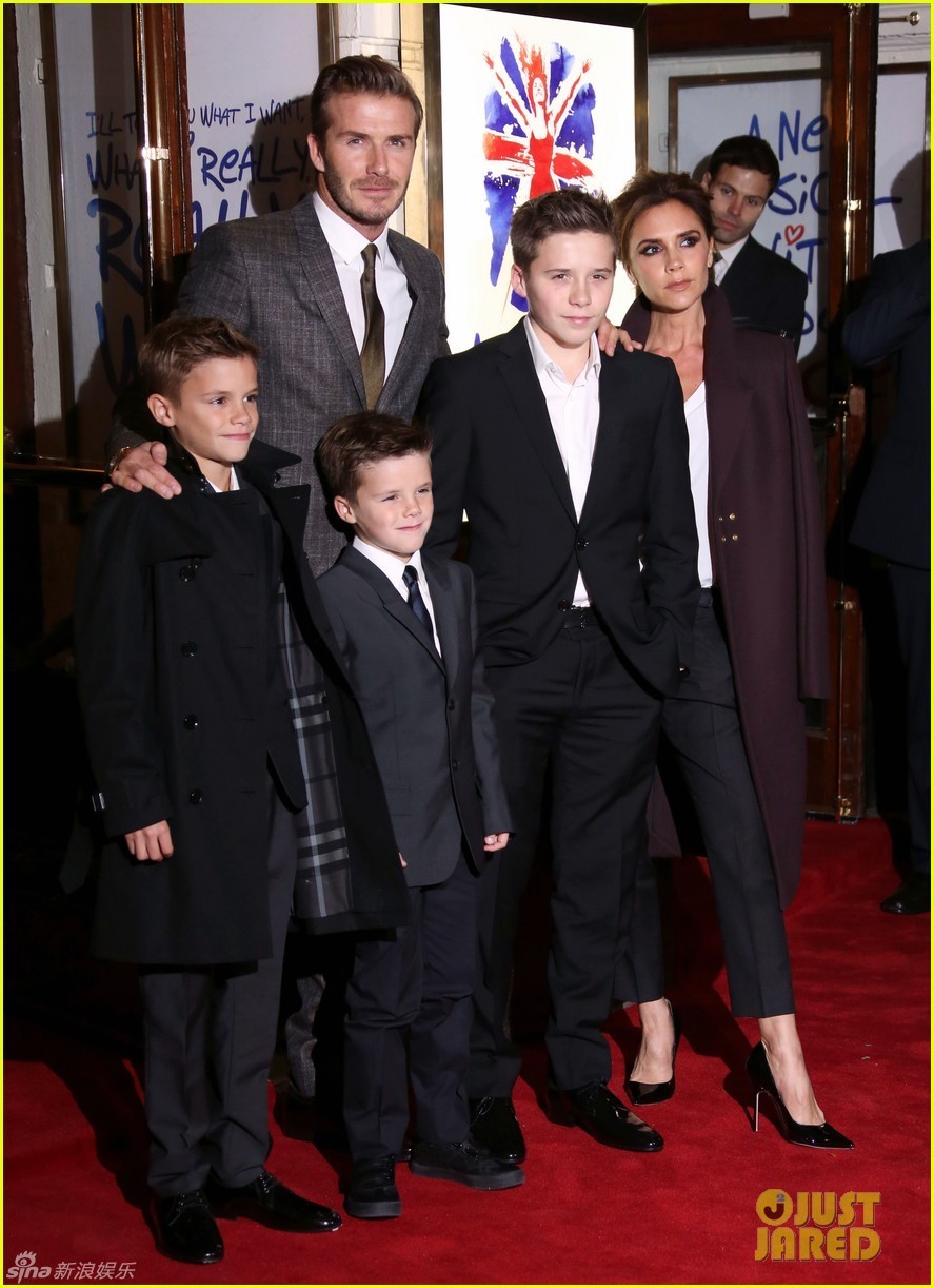 组图:贝克汉姆一家盛装亮相 辣妹摆酷三子型爆