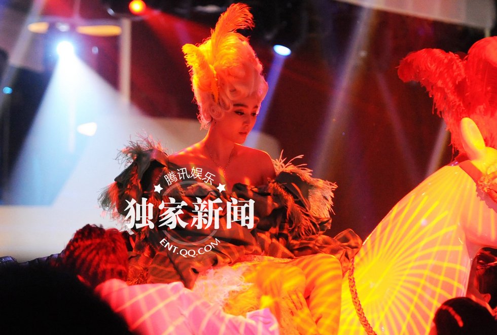 组图:范冰冰片场大跳“骑马舞” 装扮华丽露美腿