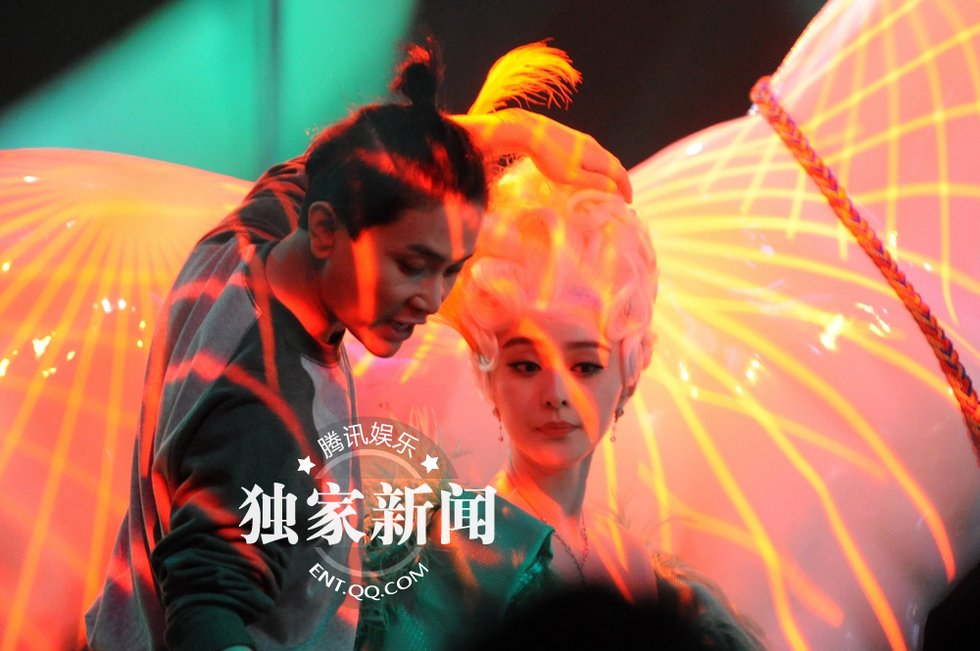 组图:范冰冰片场大跳“骑马舞” 装扮华丽露美腿