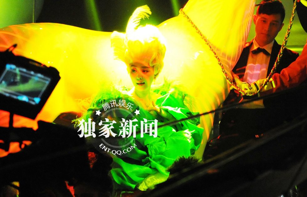组图:范冰冰片场大跳“骑马舞” 装扮华丽露美腿