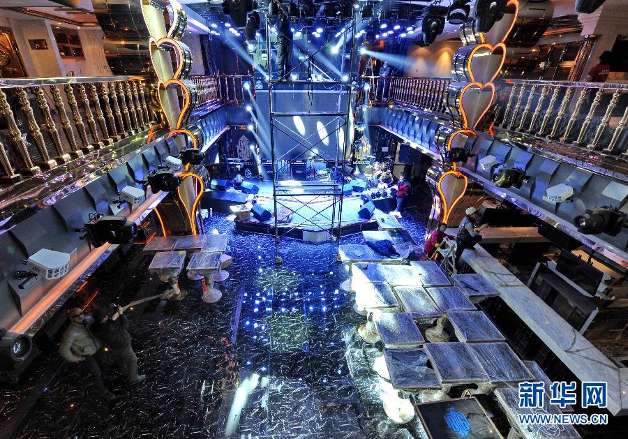 12月19日,工人在“1981音乐俱乐部”二楼演艺堂施工。演员小沈阳参股开办的高档酒吧“1981音乐俱乐部”位于辽宁省沈阳市和平区黄金地段,共有3层,内部总面积2000多平方米。据业内人士介绍,该酒吧装修档次在辽宁地区堪称一流。该酒吧将于12月22日正式开业。 新华社发