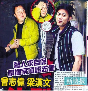 此外,令曾志伟头疼的,还有艺人中突现“二五仔”。港媒曝出,掌掴事件发生后,目睹事件的沈嘉伟、梁汉文、洪天明等先后被邀到警局提供资料。而有艺人为求自保,竟向警方顶证曾志伟,加上黄浩称有闭路电视及侍应作证,使得警方掌握了充足证据才决定拘捕曾志伟。对于“二五仔”,港媒指可能是歌手梁汉文,因为曾志伟20日举行“末日派对”时邀请一众圈中好友,但梁汉文未获邀出席,再者当天被追问是否顶证曾志伟一事时,梁汉文也立即黑脸并拒绝发誓证清白。知情人也称,曾志伟在派对上和乐易玲、苗侨伟等人坐在角落里不停爆粗,“那个人口口声声说任何时候都撑志伟。没想到还是做了‘二五仔’。当天他也有份起争执,为求自保就推志伟出来,现在我们和他势成水火。”