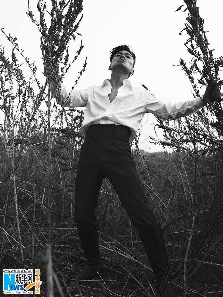 王宝强庆功曝骑马装黑白酷照 飞机头造型别致/图