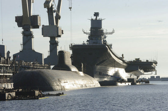 【资料图】正在俄罗斯进行改装的“戈尔什科夫海军上将”号航母