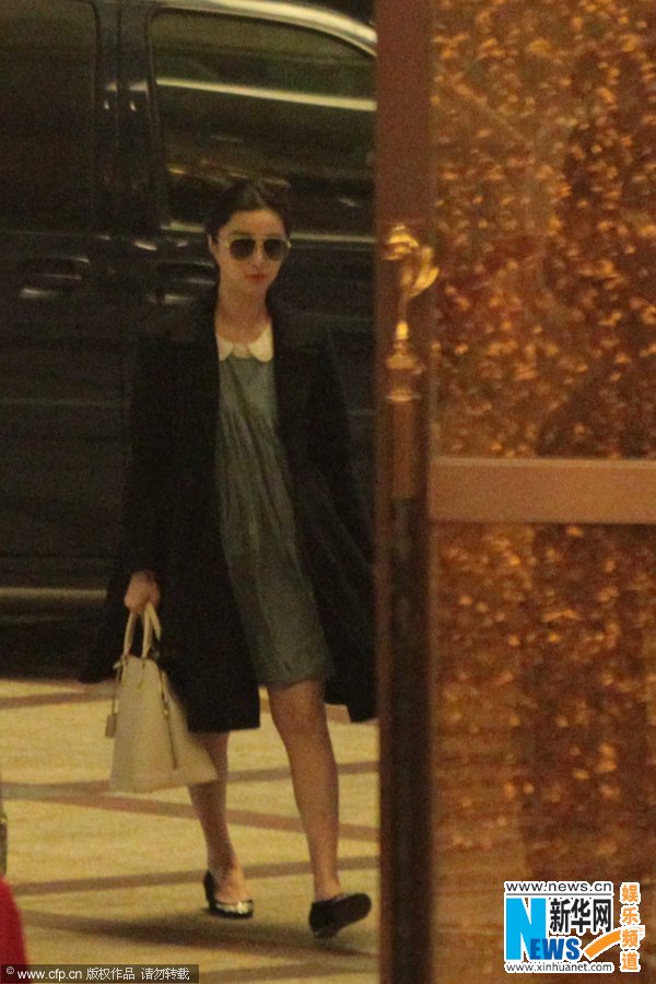 各大卫视跨年晚会进入最后的激战,今年跨年虽不再大烧钱,但各卫视对大牌明星的需求仍旧火爆。近日,范冰冰现身深圳,参加深圳卫视2013跨年晚会录制。在酒店门口,知性气息颇浓的“范爷”一现身,就遭遇了围观。黑风衣、绿裙子,手拎乳白色豪包,复古墨镜几乎形同虚设。多位路人自范冰冰现身的一刻就停在原地盯着“范爷”看,眼神一路跟随,满心欢喜。“范爷”的演出服是一件淡粉色的露肩拖尾长裙,由于行动不便,“范爷”在经纪人穆晓光的搀扶下,披着黑色披肩,缓缓走向录制现场。