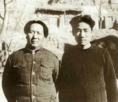 1946年毛泽东与毛岸英在延安