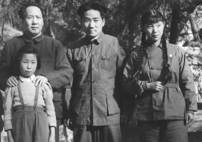 1949年4月,毛泽东和毛岸英、刘松林、李讷在香山